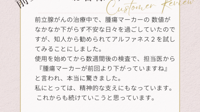 前立腺がん の癌腫瘍マーカーの数値がアルファネス2で下がった口コミ