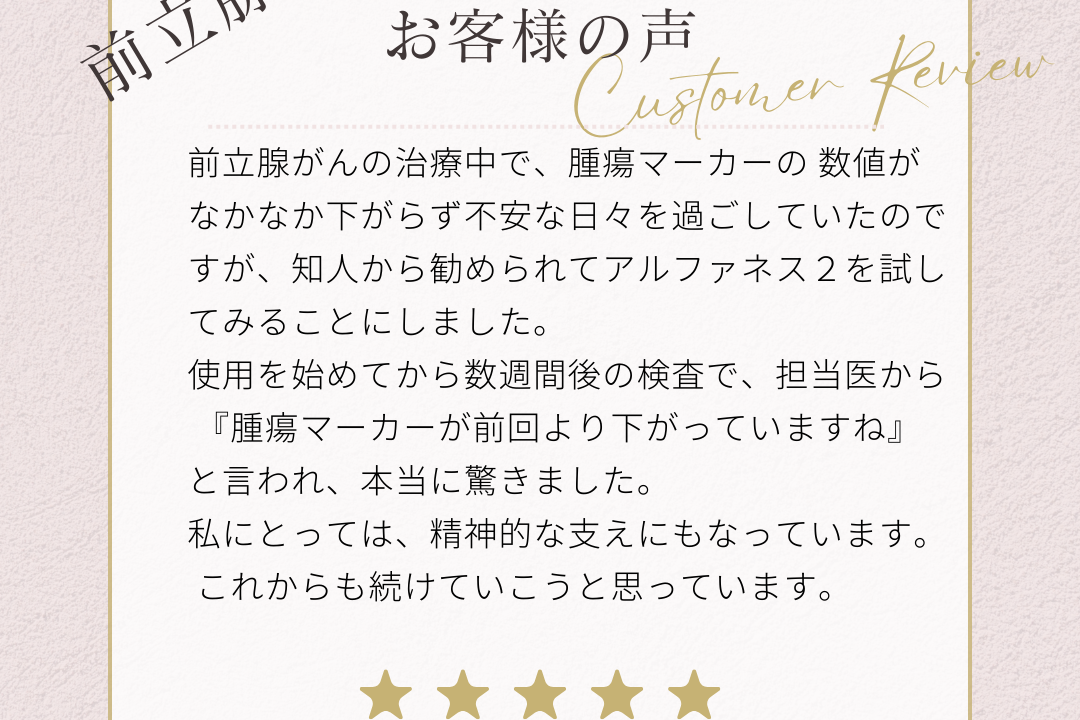 前立腺がん の癌腫瘍マーカーの数値がアルファネス2で下がった口コミ
