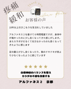 疼痛緩和・慢性痛がアルファネス2で改善した口コミ