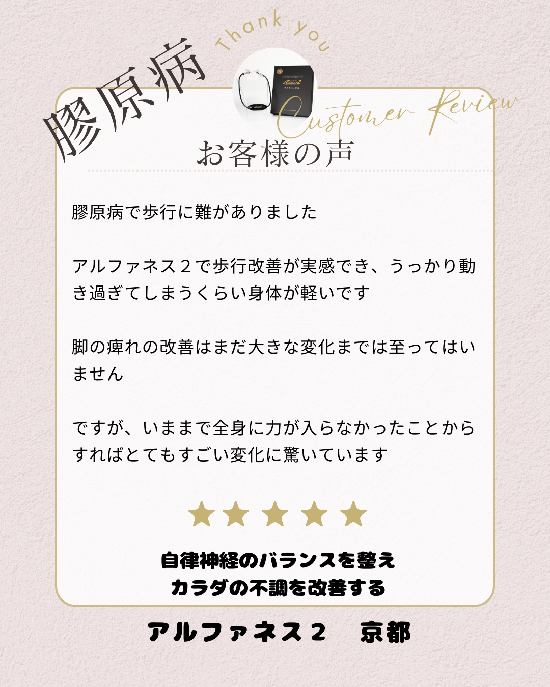[→ 歩行改善の第一歩。アルファネス2の詳細はこちら] [→ 体験談の続きを見る:多くの膠原病患者様が実感されています]