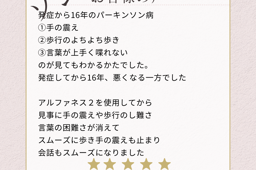 パーキンソン病がアルファネス2で改善体験談