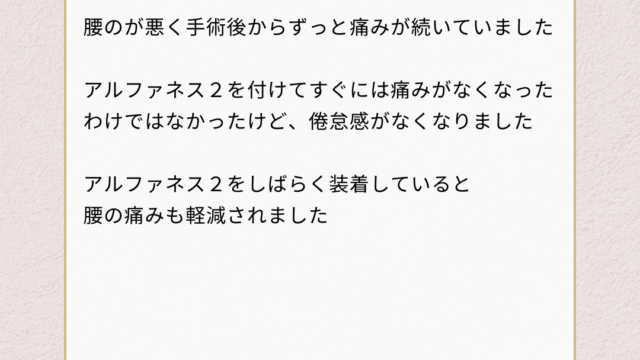 手術後も続く腰痛がアルファネス2で改善した体験談